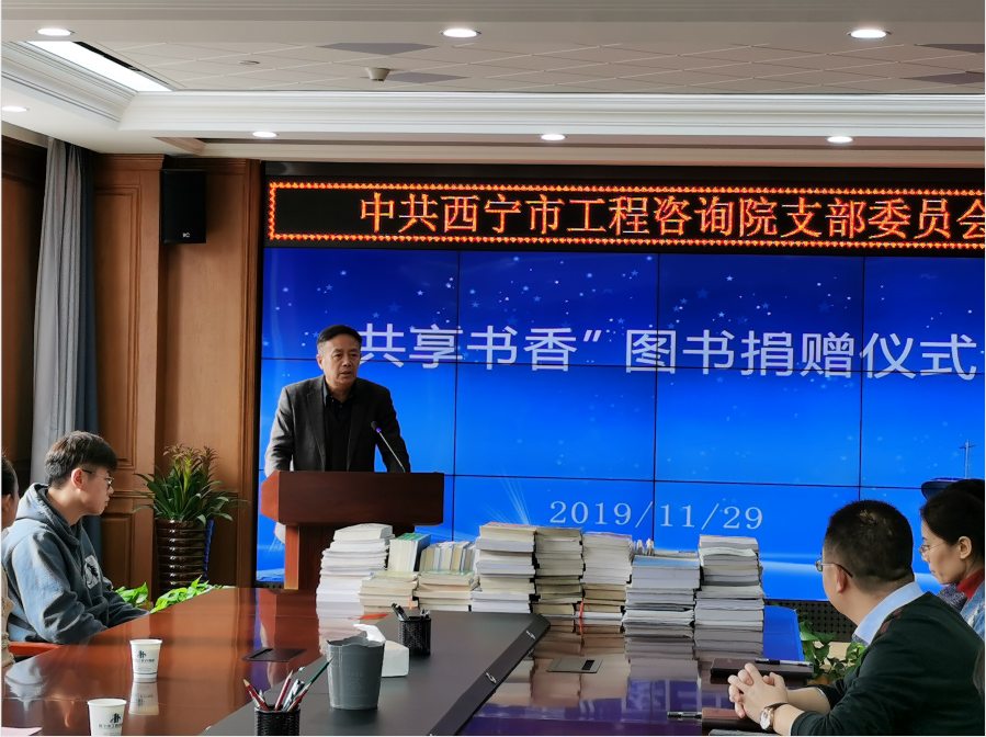 為提升全院職工文化素養(yǎng),努力營造濃郁的讀書學習氛圍,2019年11月29日下午在西寧市工程咨詢院10樓會議室舉行以“共享書香”為主題的圖書捐贈儀式。西寧市工程咨詢院顧問李勇、院長李廷君、副院長蘇星、副院長羅文芳及全體職工出席活動。由西寧市工程咨詢院顧問李勇老師向咨詢院捐贈圖書200余冊,包括宏觀經濟學、經濟研究類等方面的圖書。